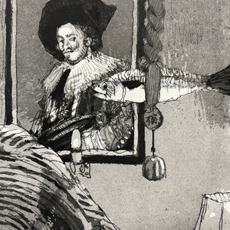 I've been working on some big new plates. In contrast to paintings, "big" for an etching means 60cm+, beyond that many parts of the process can get tricky as you come up against limitations in equipment size e.g. the hot-plate for melting grounds, aquatint box and the bed of the printing press. The price of copper plate is another issue. Lucien Freud, for example, not one to hold back, barely went above this size. The latest is "Someone's firebombed McQuaid's Pharmacy", which will feature in my upcoming exhibition of the same name.