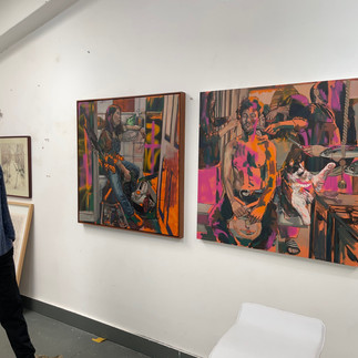I've split this pair up for a while as the portrait of Yejin went firstly down to London for judging for the Royal Society of Portrait Painters annual show, and now is off to the RHA preselection in Dublin. For a painting of this size I have to channel Dick Whittington, with a shoulder sling made of a bedsheet around the well-wrapped canvas. Luke at St. Barnabas framed it beautifully in a teak-stained and maple-waxed tray frame.